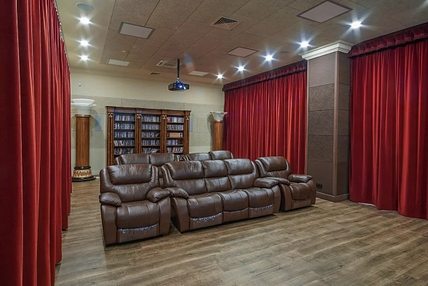 Индивидуальный киносеанс по вашему запросу, удобные кожаные кресла и диваны, большой экран, великолепный звук - весь кинозал только в вашем распоряжении!