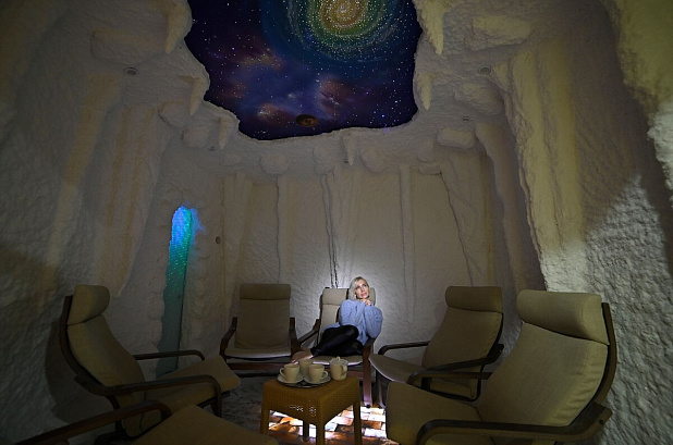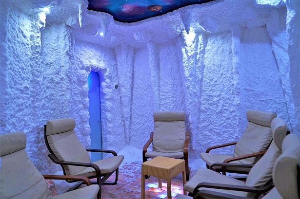 Длительность сеанса 35 минут. Вместимость соляной пещеры – 6 человек.